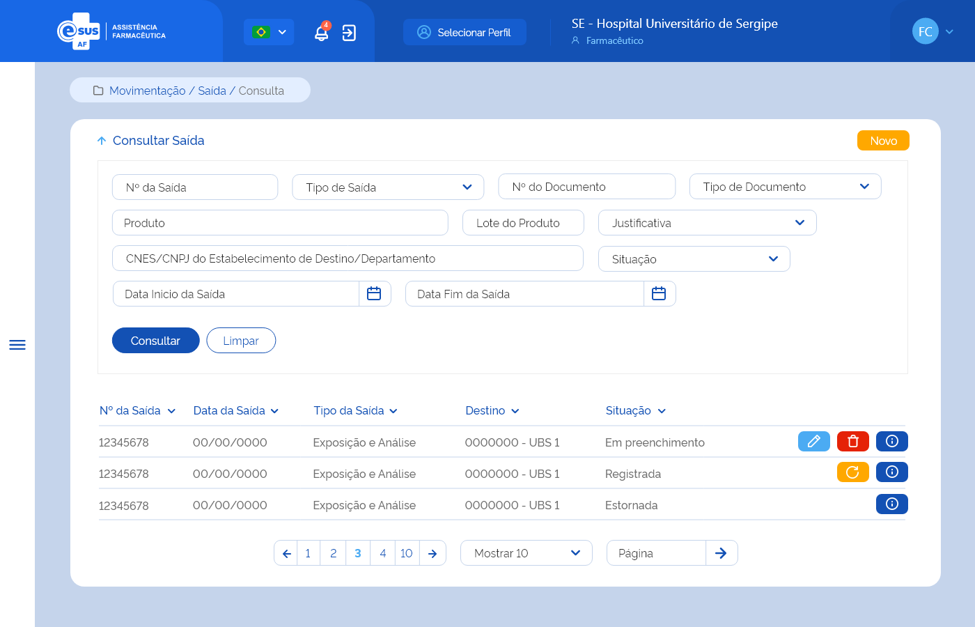 Como usuário quero consultar a(s) saída(s) de produto(s) realizada(s) no estabelecimento de saúde logado e poder realizar estornos que se façam necessários para estas movimentações.